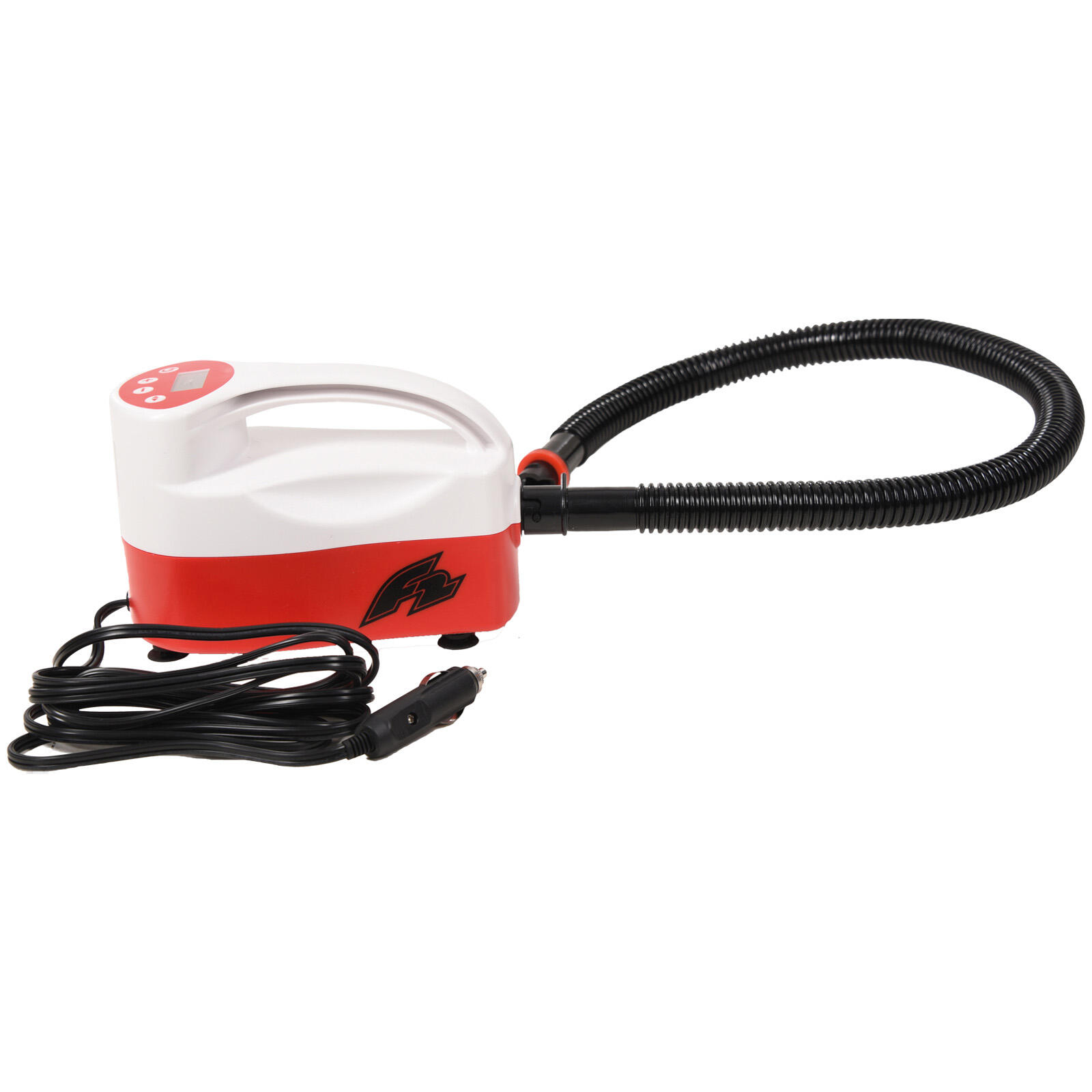 Die F2 SUP Pumpe Zetta ist die handliche Lösung für alle, die ihr Board bequem und schnell aufpumpen möchten. Trotz ihrer kompakten Maße liefert sie beeindruckende Leistung: Mit einem Druckbereich von bis zu 20PSI (150kPa) sorgt sie für zuverlässige Befüllung – ob mit Akku oder im Netzbetrieb. Die Pumpe ist ideal für spontane SUP-Abenteuer und lässt sich dank ihres geringen Gewichts von nur 895g problemlos transportieren.